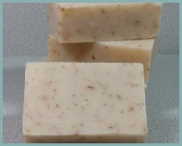 This soap has a warm cinnamon & clove scent. Made with a touch of honey and ground oatmeal to hydrate and soothe the skin.